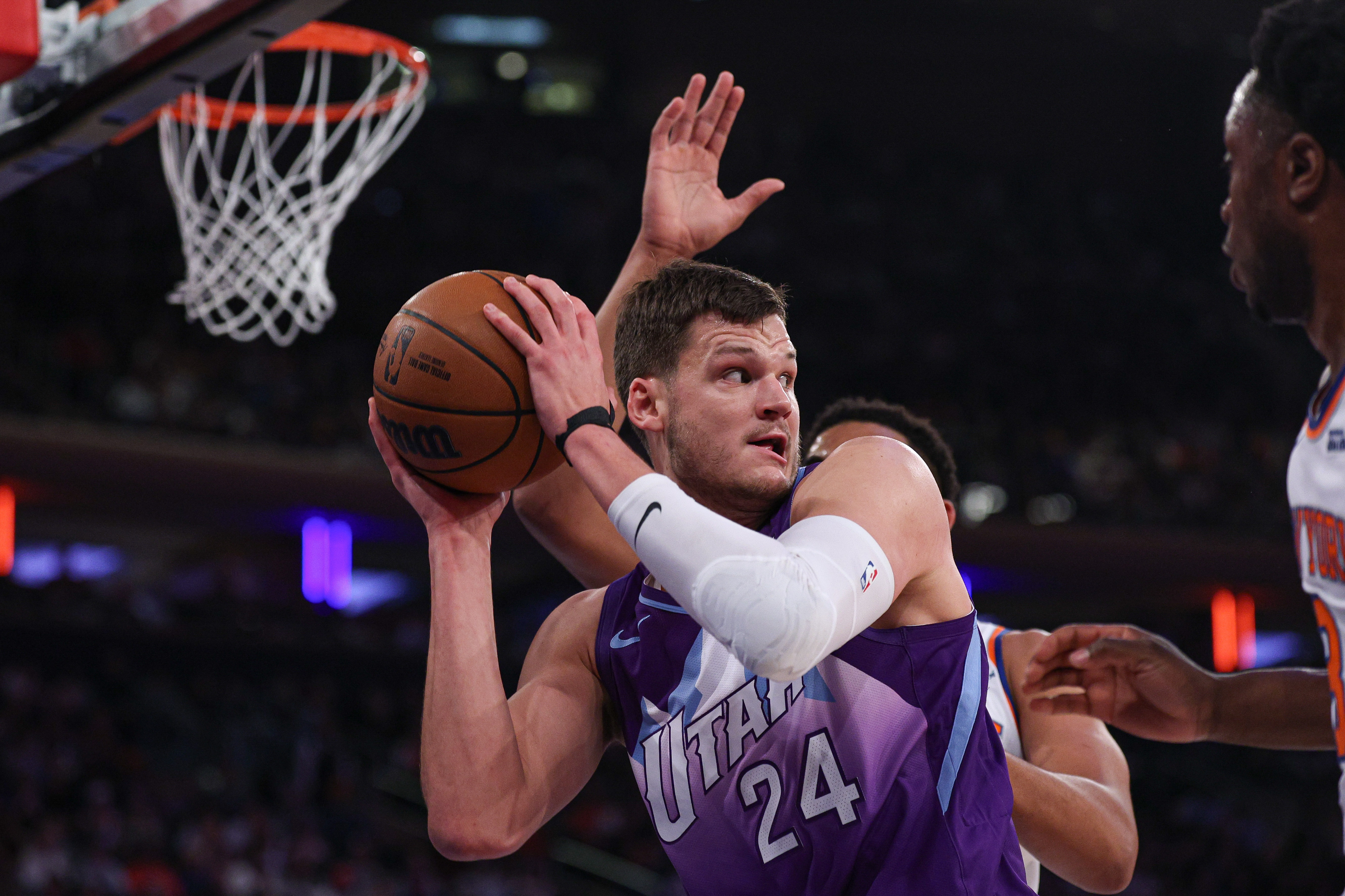 本场比赛,爵士内线凯斯勒状态火热,进攻端一球不丢,在33分钟的时间里,投篮8中8,高效拿到16分8篮板1助攻2抢断6盖帽的数据,正负值+23。
