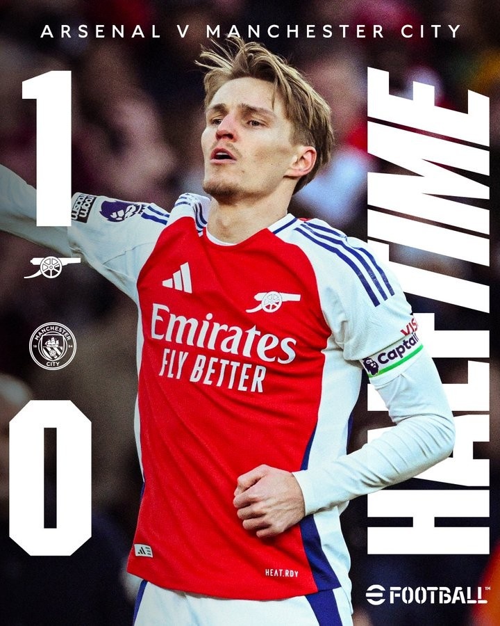 2月3日讯 阿森纳在本轮英超半场1-0领先曼城,厄德高为主队闪击建功。